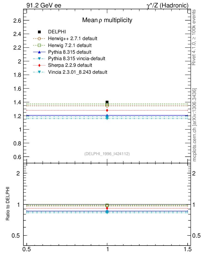 ee : γ*/Z (hadronic) : Identified Particles : ρ multiplicity
