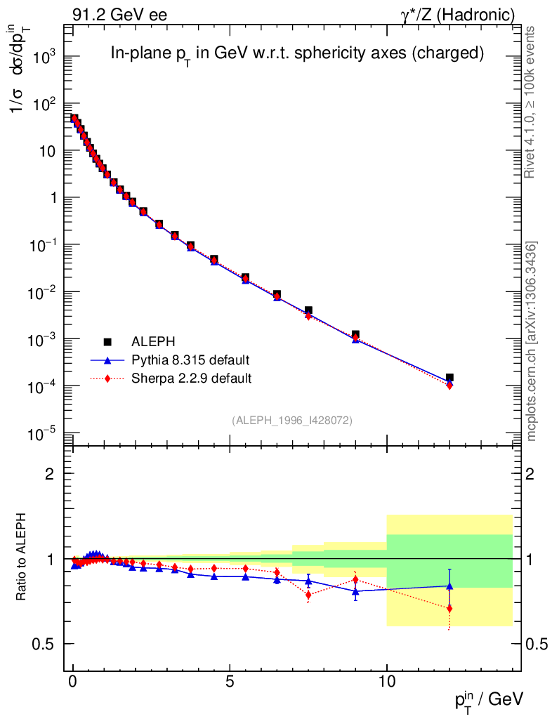 ee : γ*/Z (hadronic) : Charged Particles : pTin (Sph)