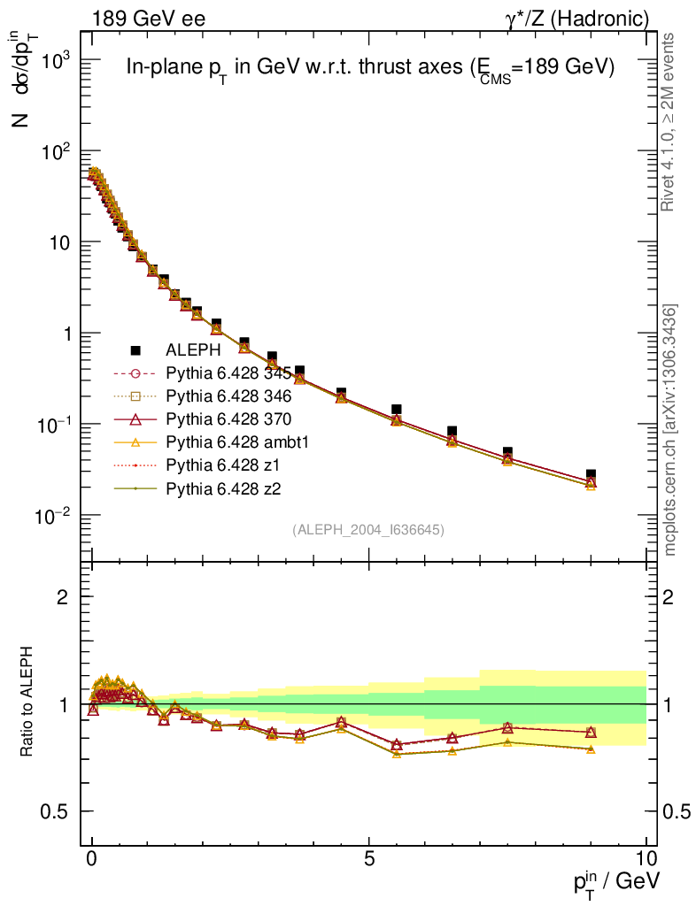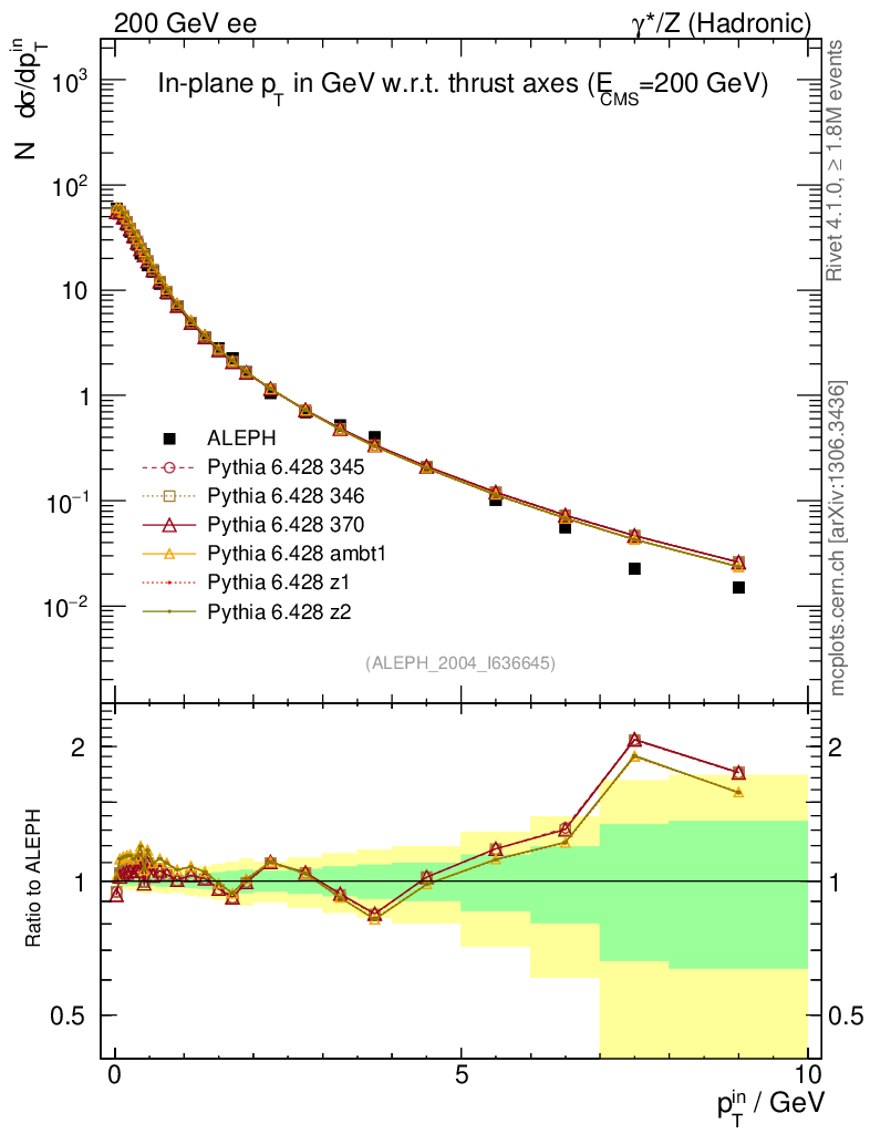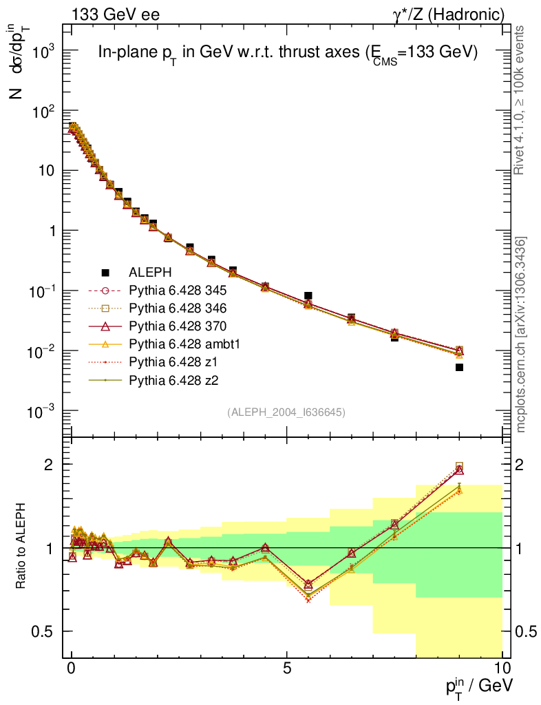 ee : γ*/Z (hadronic) : Charged Particles : pTin (Thrust)