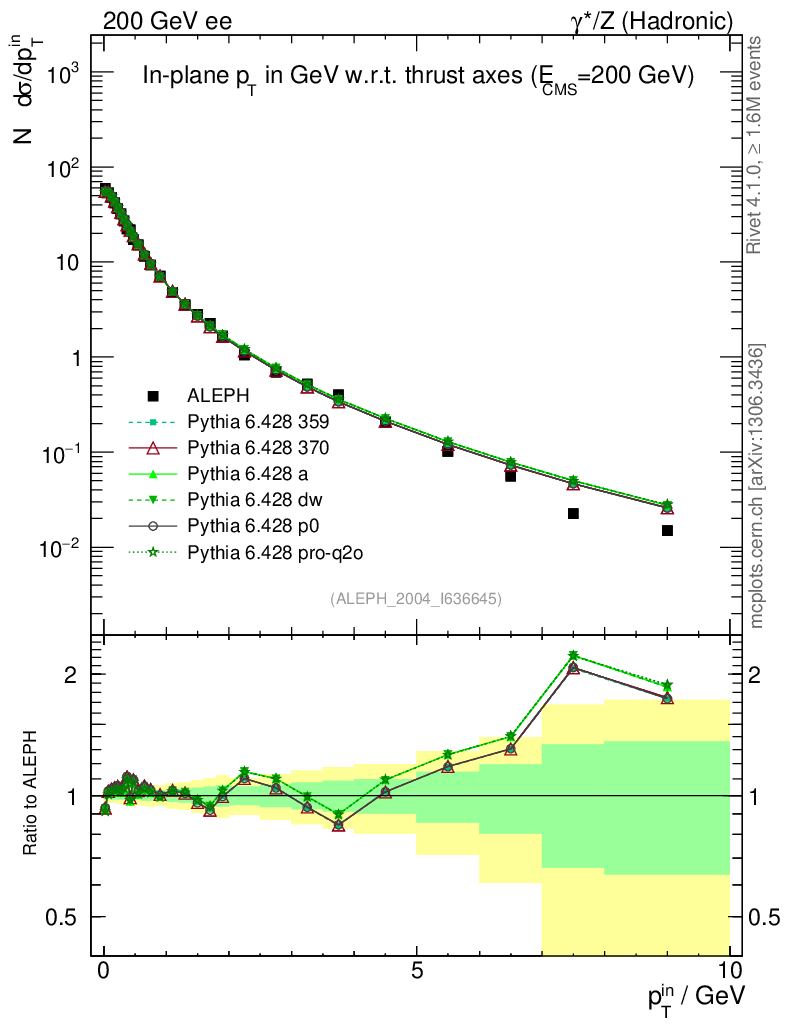 ee : γ*/Z (hadronic) : Charged Particles : pTin (Thrust)
