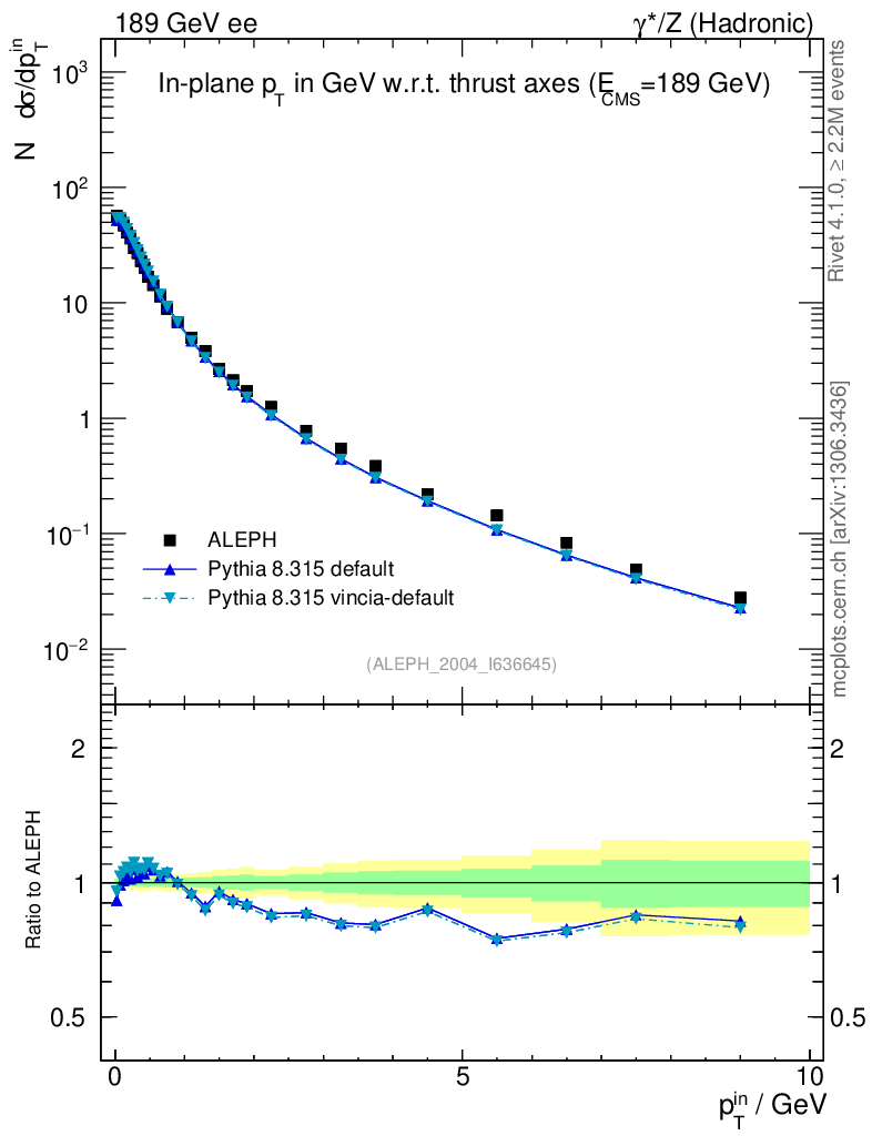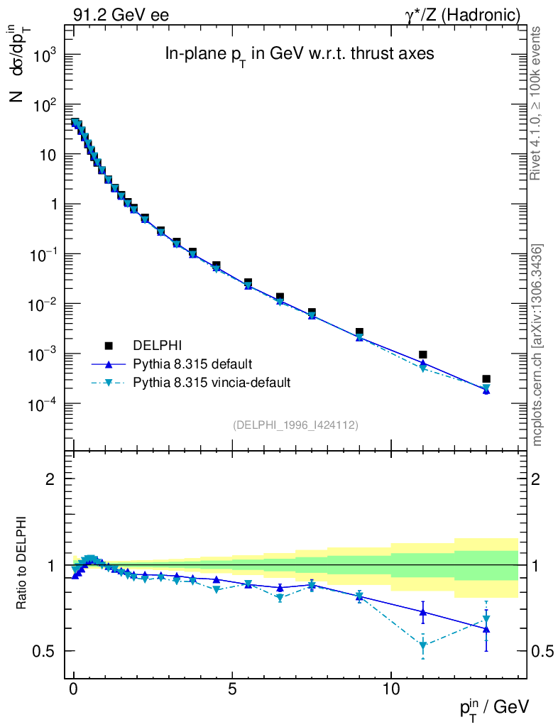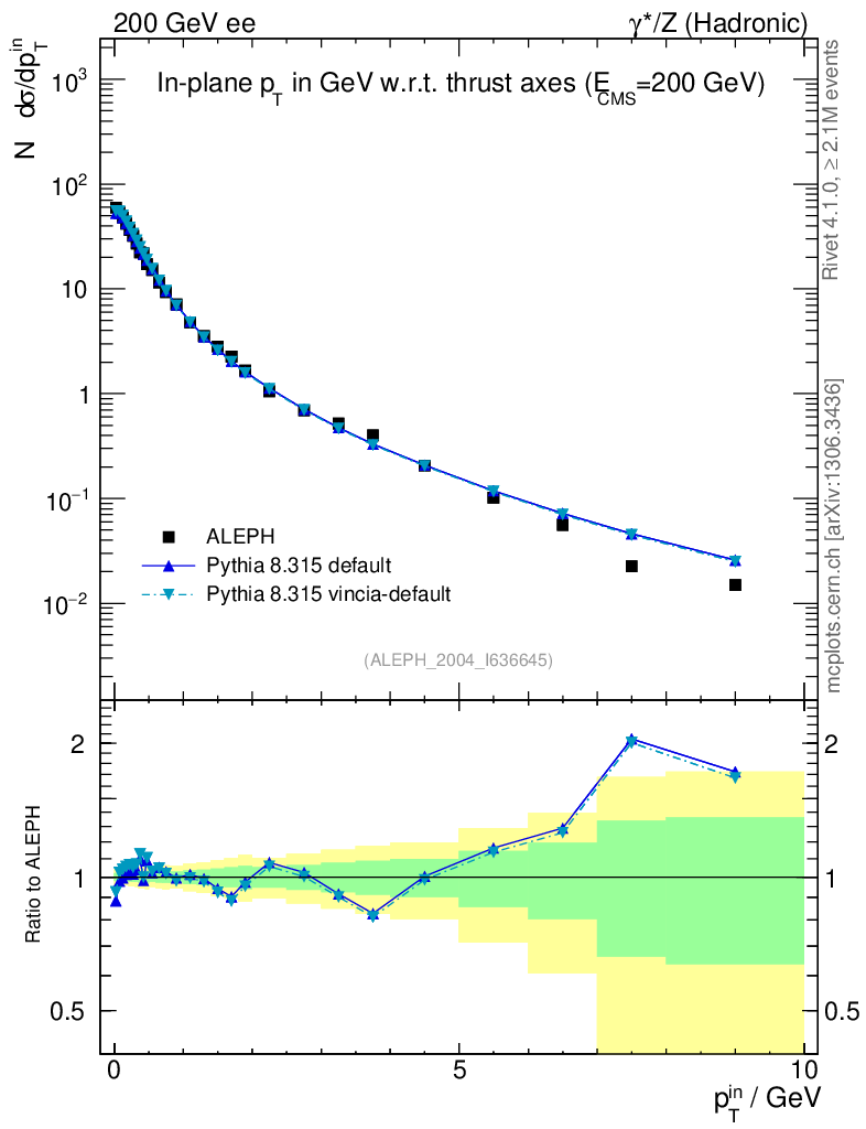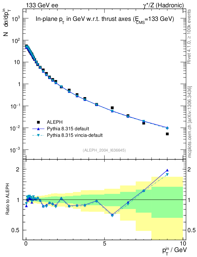 ee : γ*/Z (hadronic) : Charged Particles : pTin (Thrust)