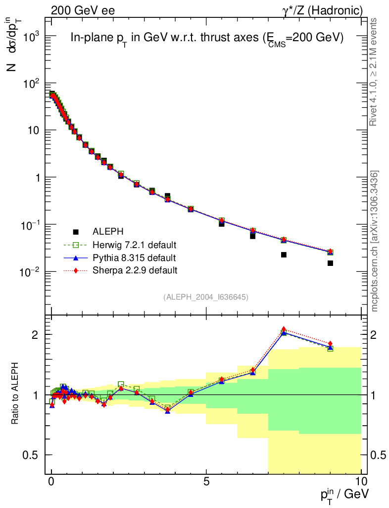 ee : γ*/Z (hadronic) : Charged Particles : pTin (Thrust)