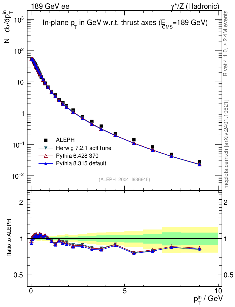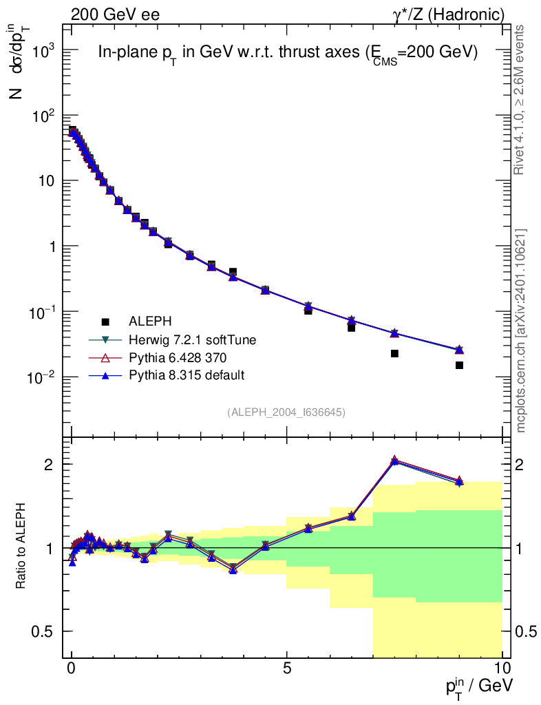 ee : γ*/Z (hadronic) : Charged Particles : pTin (Thrust)