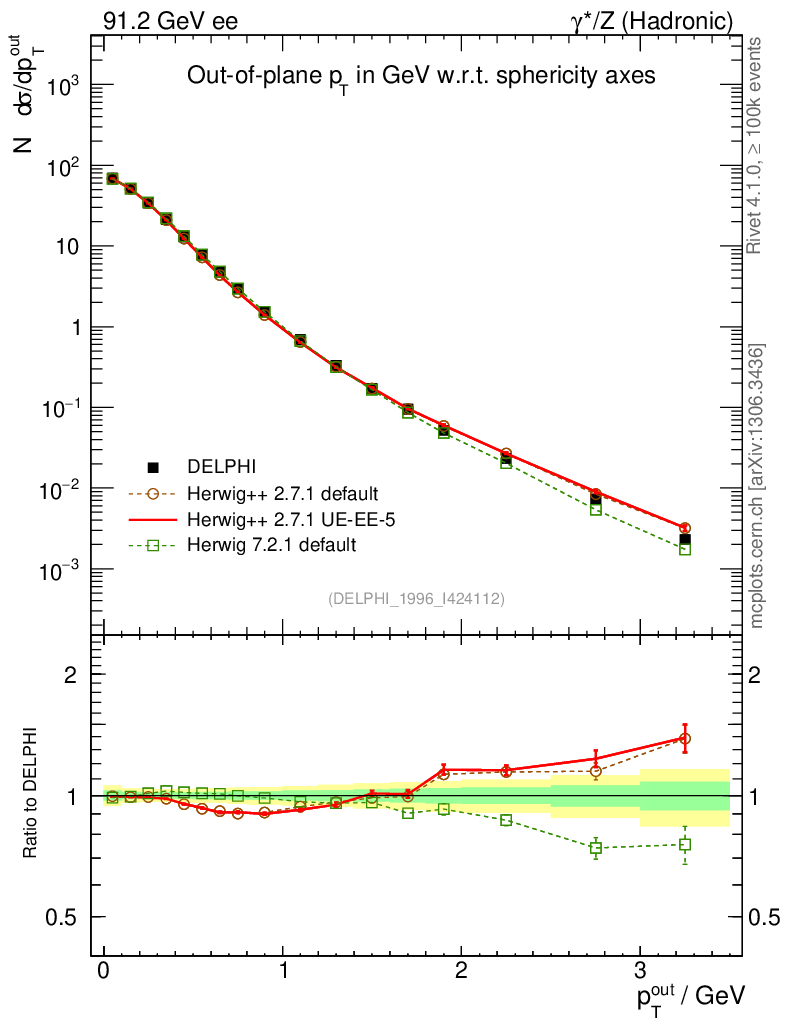 ee : γ*/Z (hadronic) : Charged Particles : pTout (Sph)