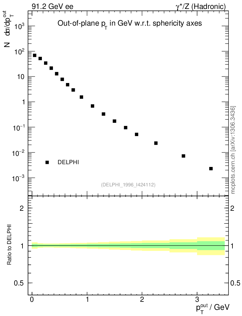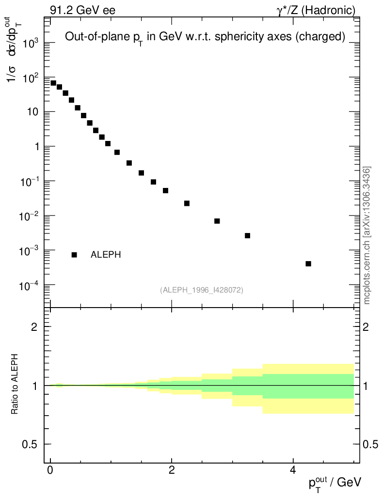 Plot of pToutSph in 91.2 GeV ee collisions