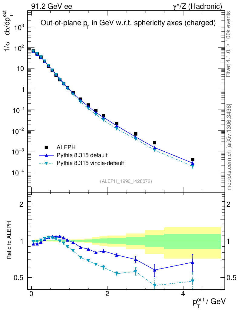 ee : γ*/Z (hadronic) : Charged Particles : pTout (Sph)