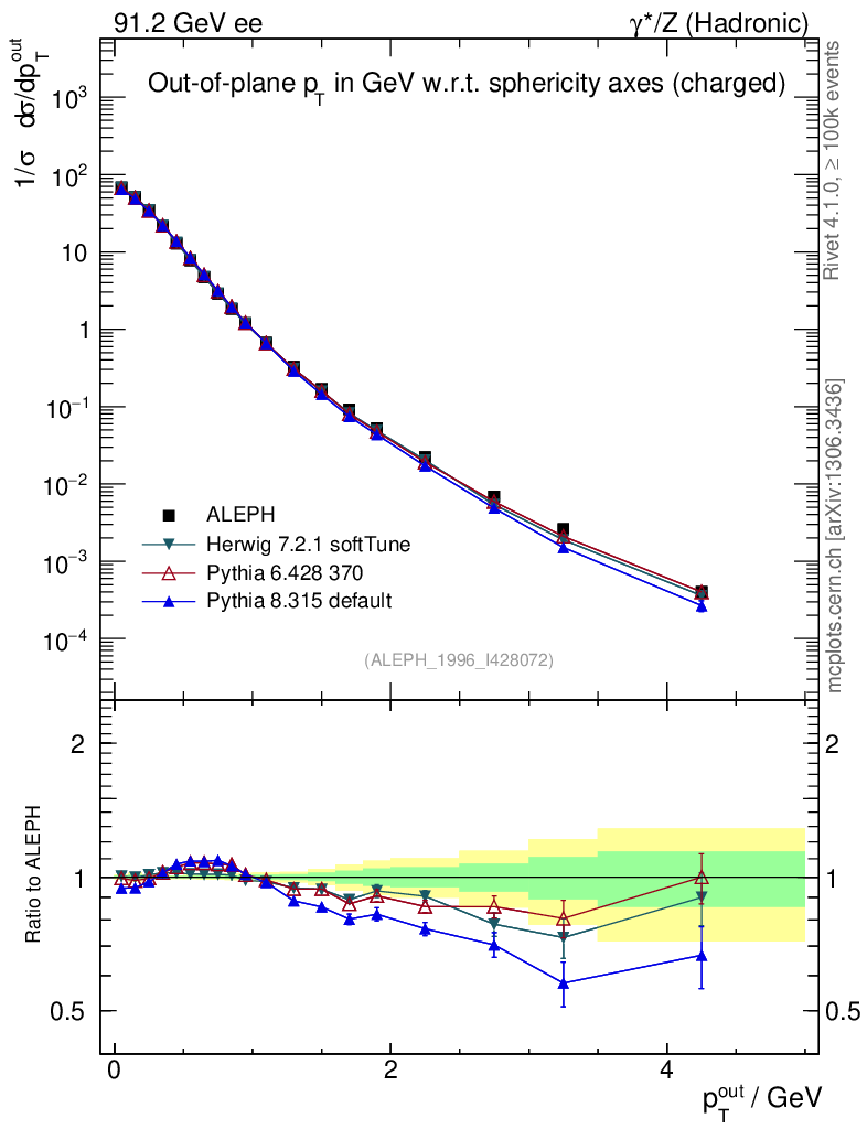ee : γ*/Z (hadronic) : Charged Particles : pTout (Sph)
