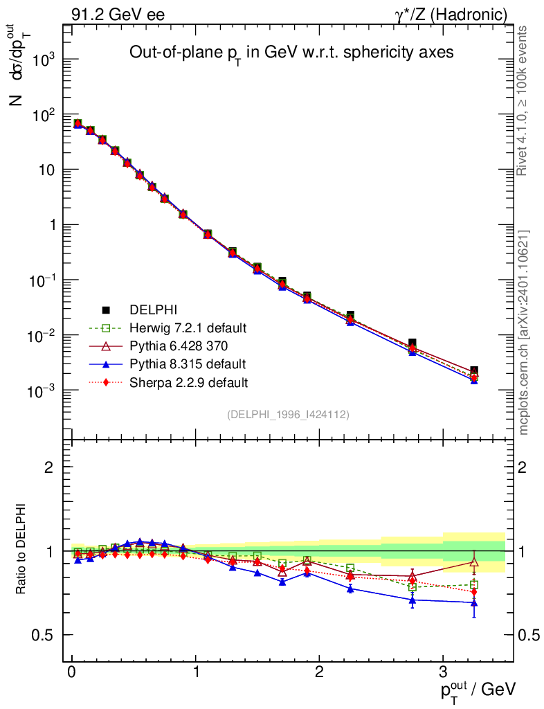 ee : γ*/Z (hadronic) : Charged Particles : pTout (Sph)