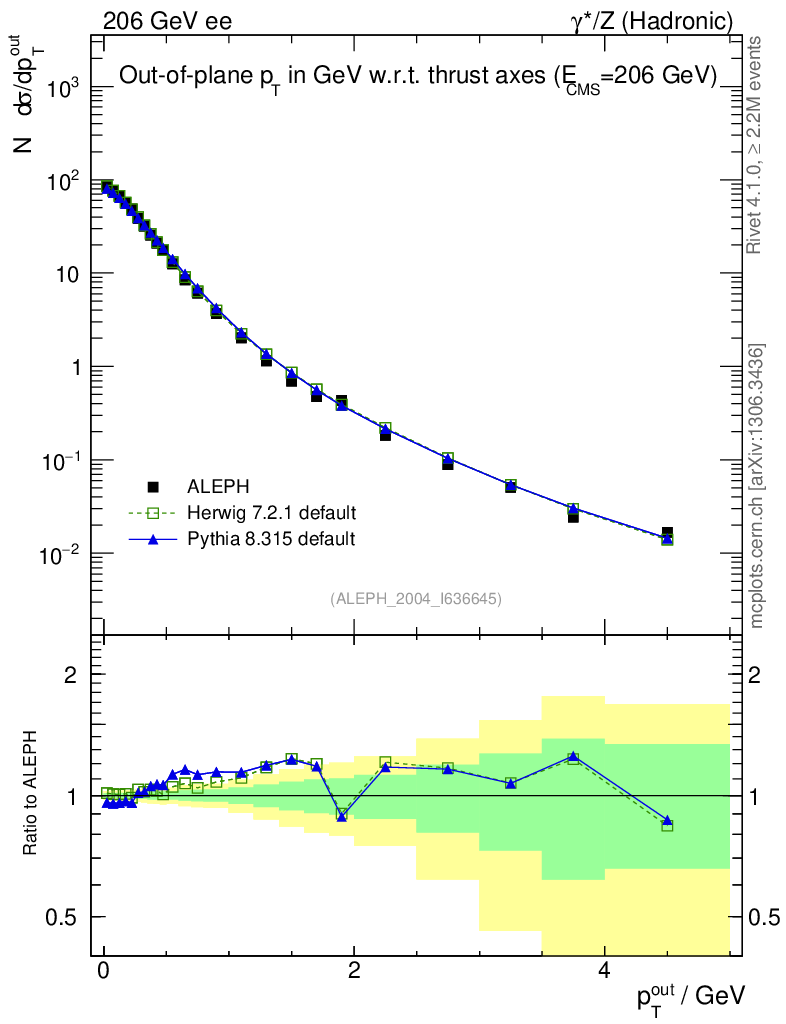 ee : γ*/Z (hadronic) : Charged Particles : pTout (Thrust)