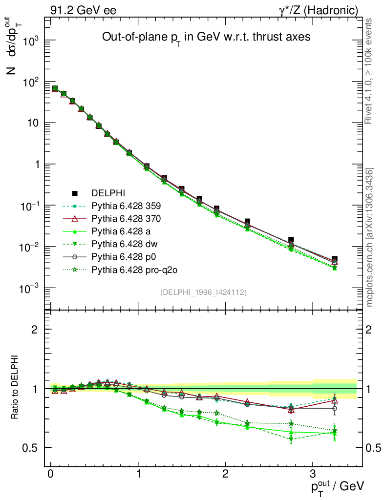 ee : γ*/Z (hadronic) : Charged Particles : pTout (Thrust)