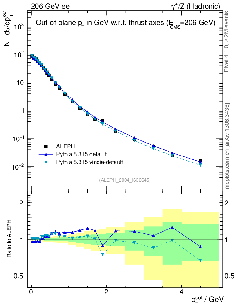 ee : γ*/Z (hadronic) : Charged Particles : pTout (Thrust)