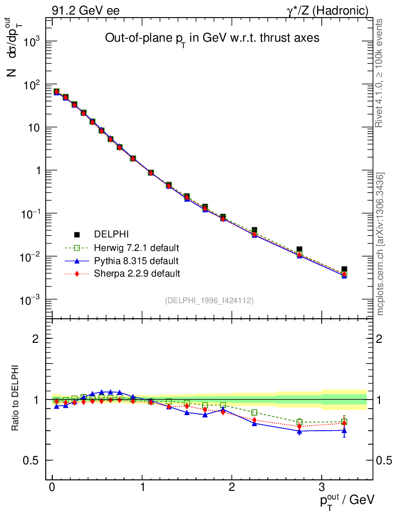 ee : γ*/Z (hadronic) : Charged Particles : pTout (Thrust)