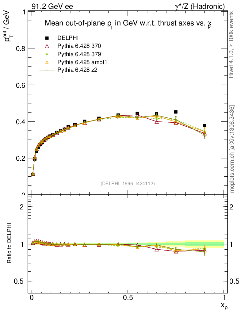 ee : γ*/Z (hadronic) : Charged Particles : <pTout> vs x (Thrust)
