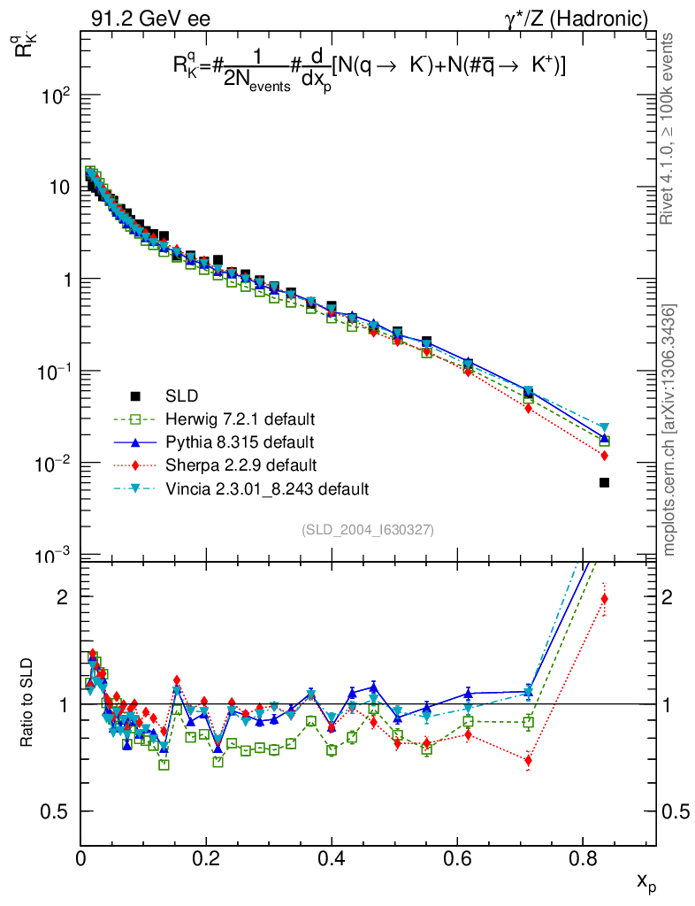 ee : γ*/Z (hadronic) : Identified Particles : N(q→K