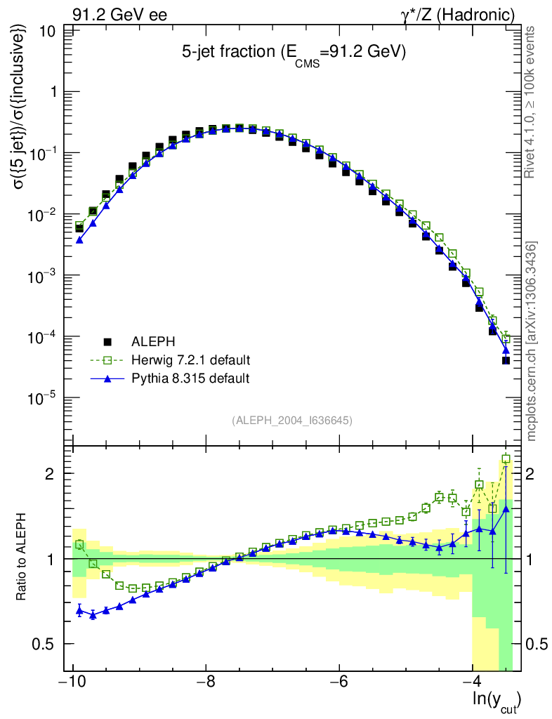 ee : γ*/Z (hadronic) : Jet rates : Five-jet fraction
