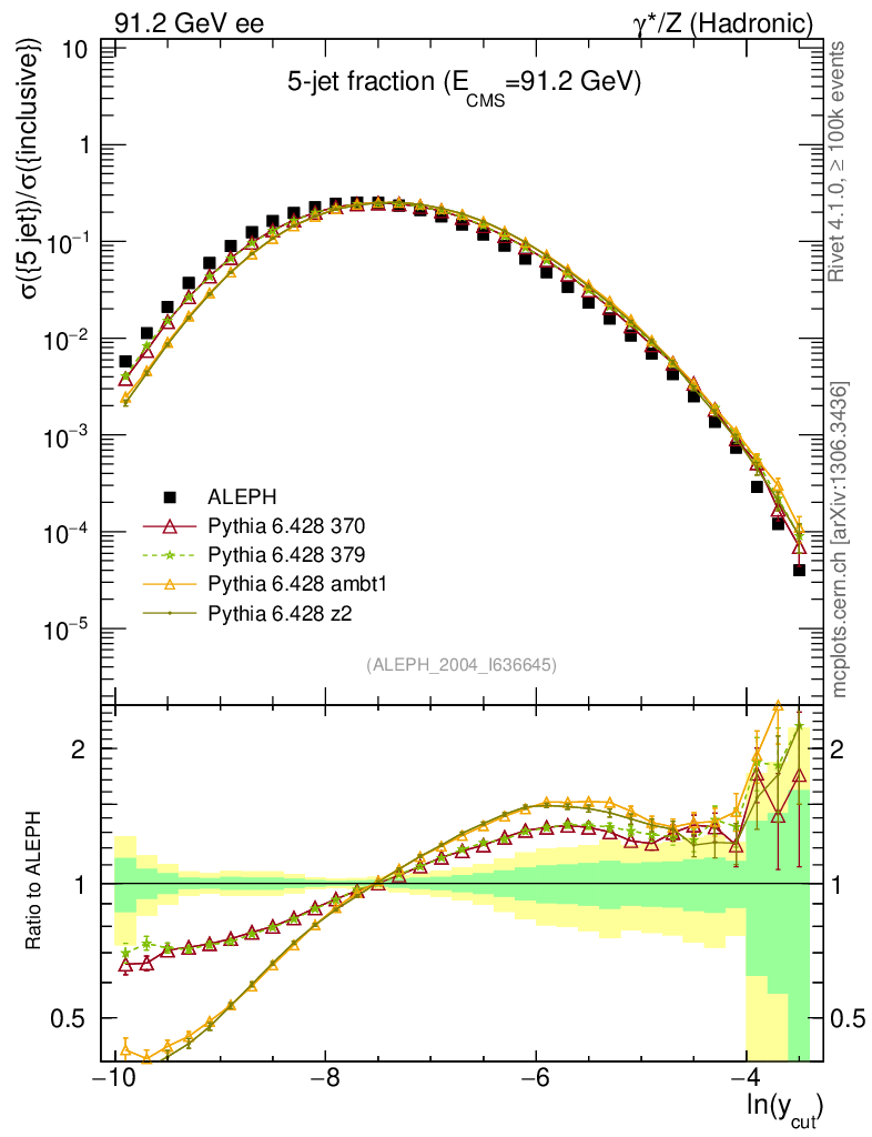ee : γ*/Z (hadronic) : Jet rates : Five-jet fraction