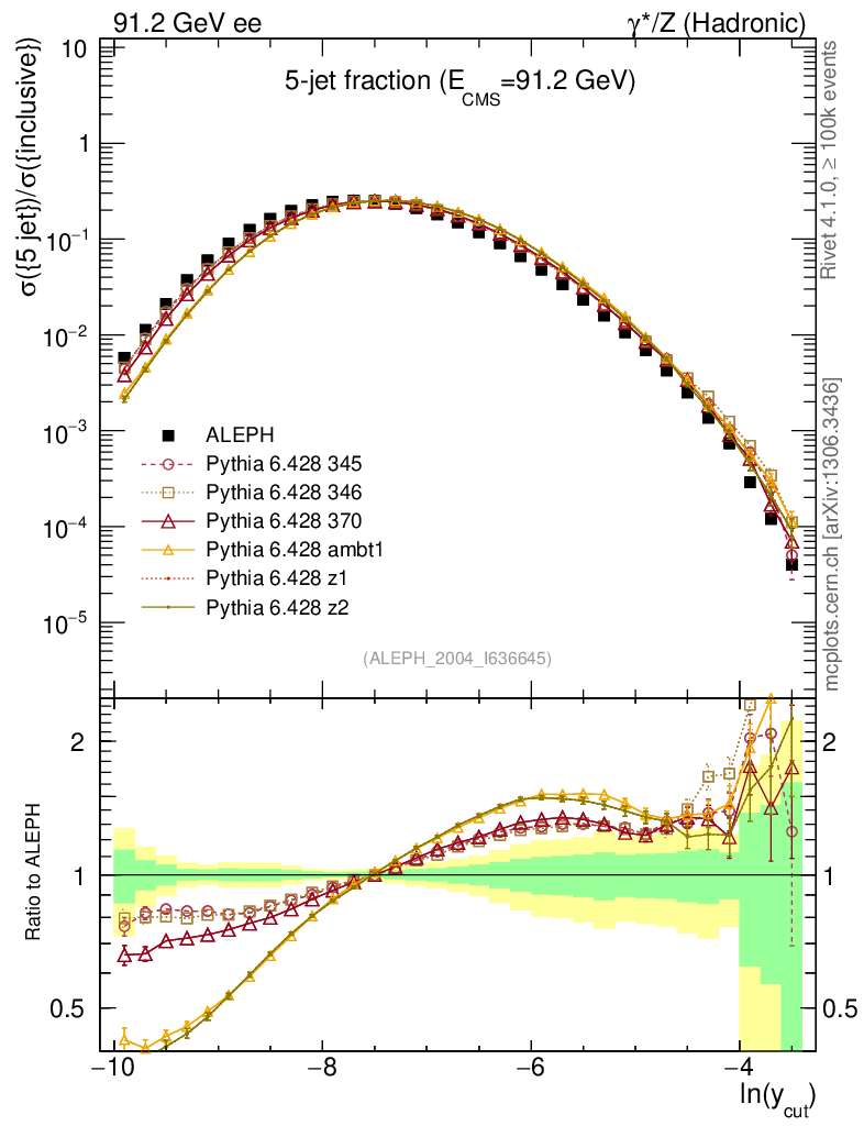 ee : γ*/Z (hadronic) : Jet rates : Five-jet fraction