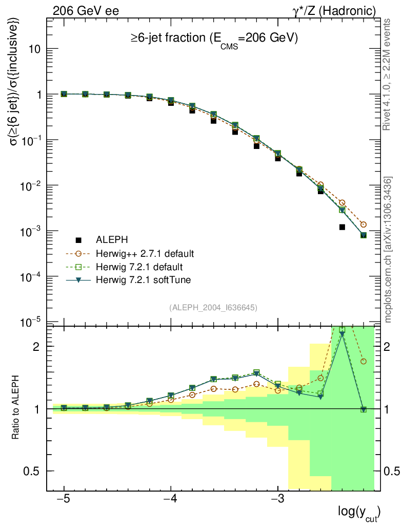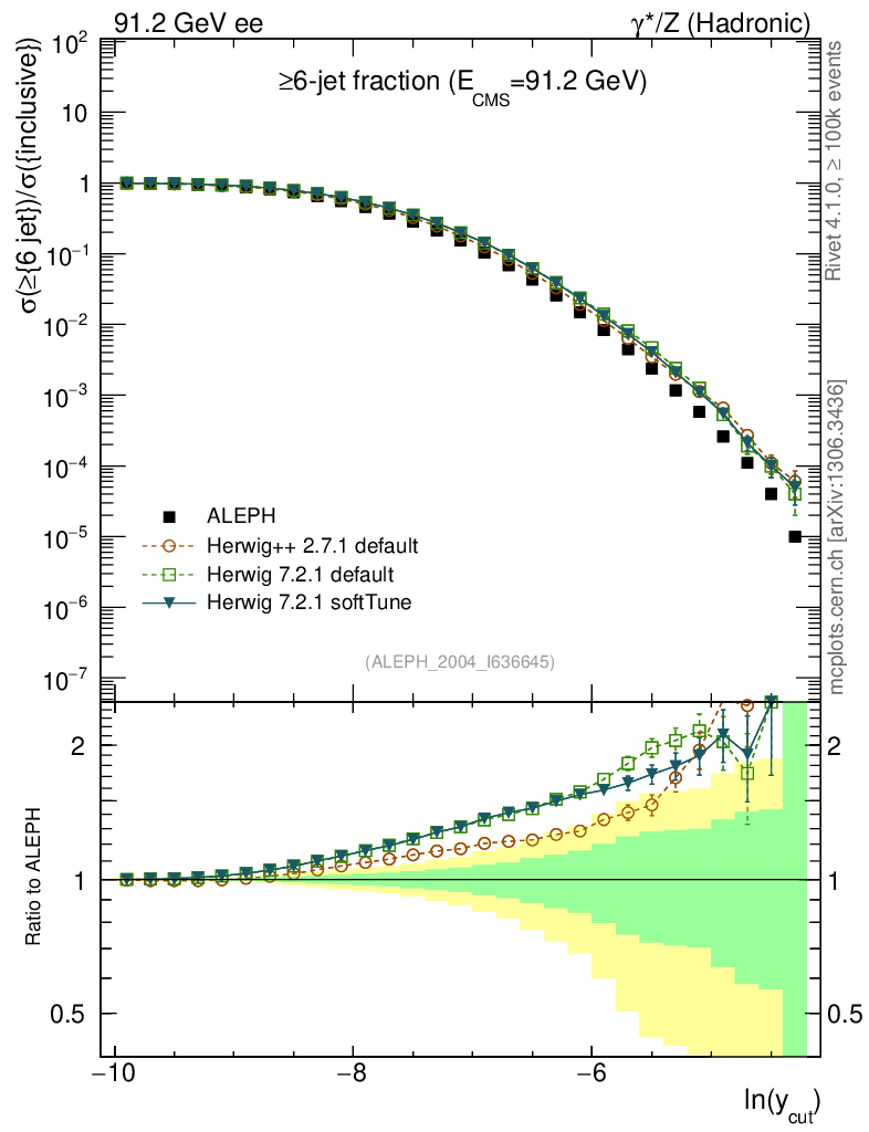 ee : γ*/Z (hadronic) : Jet rates : >Six-jet fraction