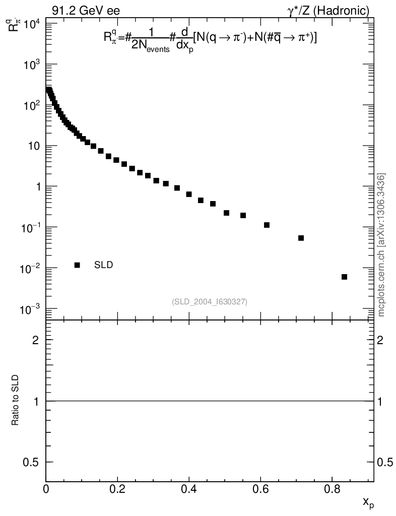 ee : γ*/Z (hadronic) : Identified Particles : N(q→π-)+N(q̄→π+)