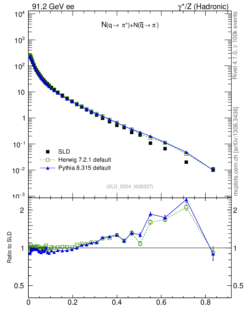 ee : γ*/Z (hadronic) : Identified Particles : N(q→π