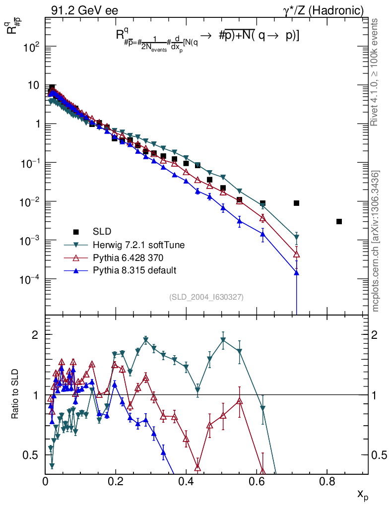 ee : γ*/Z (hadronic) : Identified Particles : N(q→p̄)+N(q̄→p)