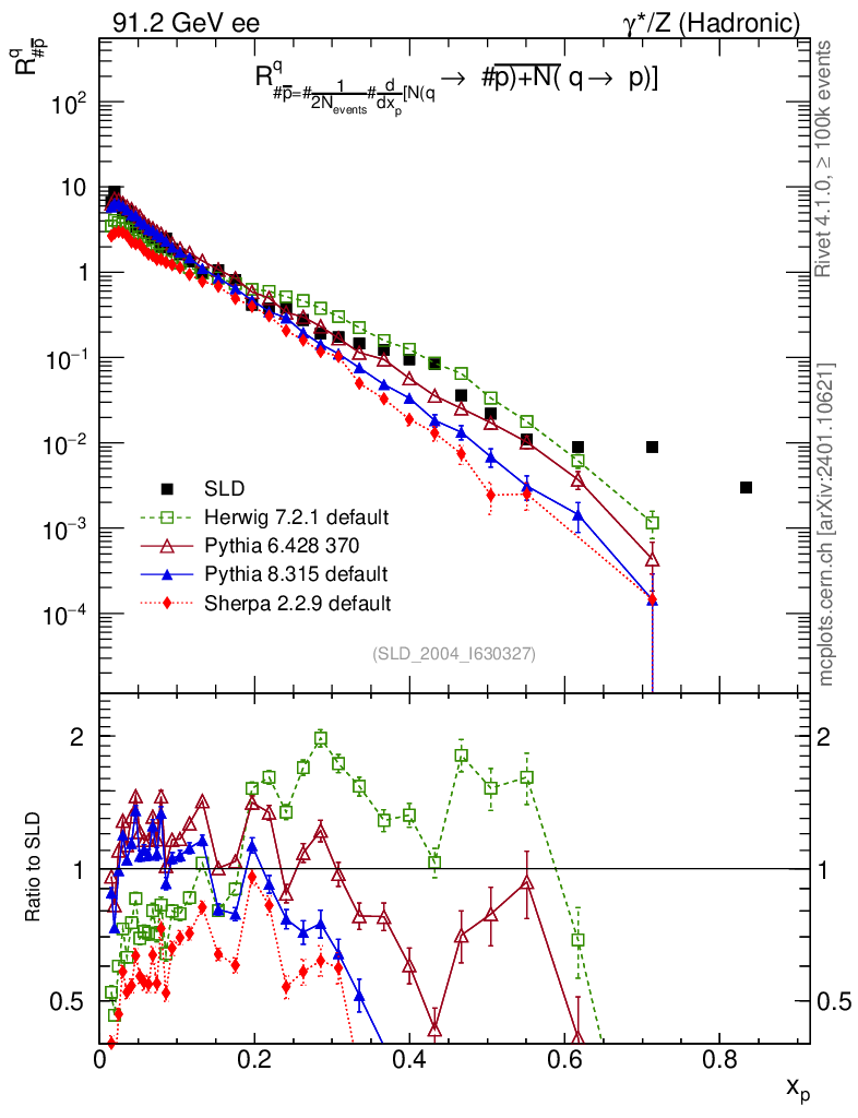 ee : γ*/Z (hadronic) : Identified Particles : N(q→p̄)+N(q̄→p)