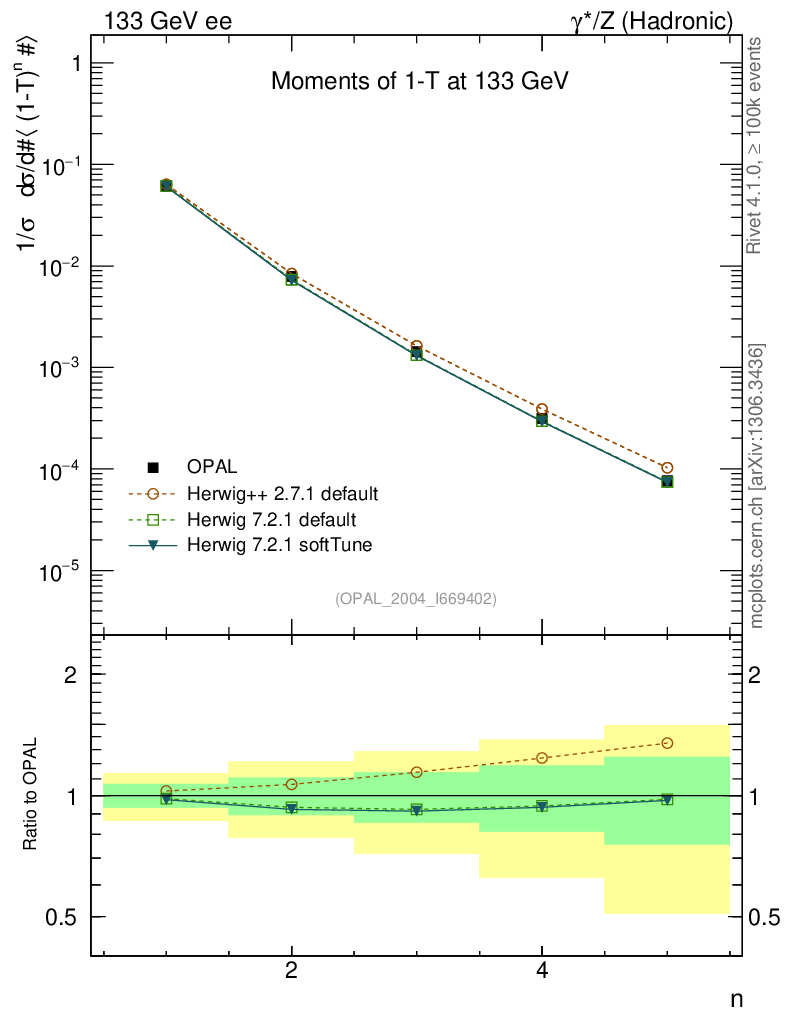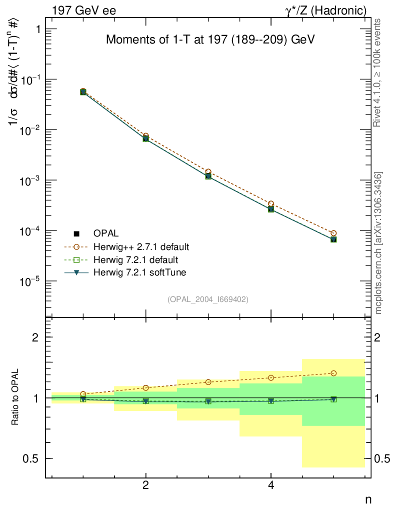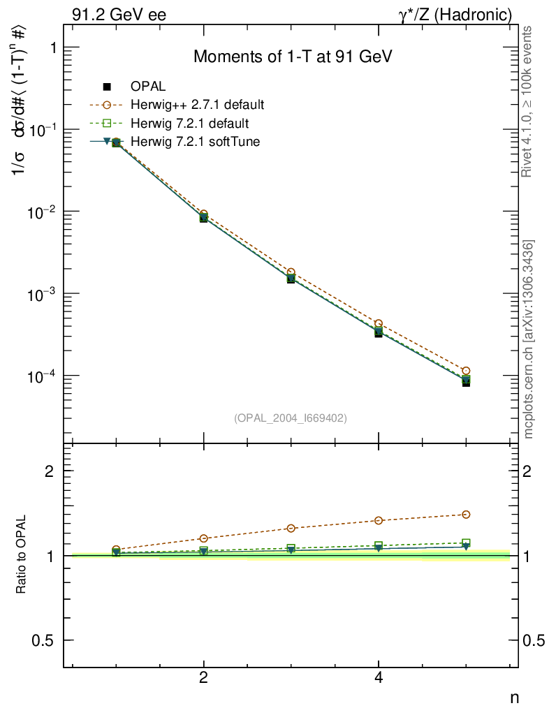 ee : γ*/Z (hadronic) : Event-Shape Moments : Moments of 1-T