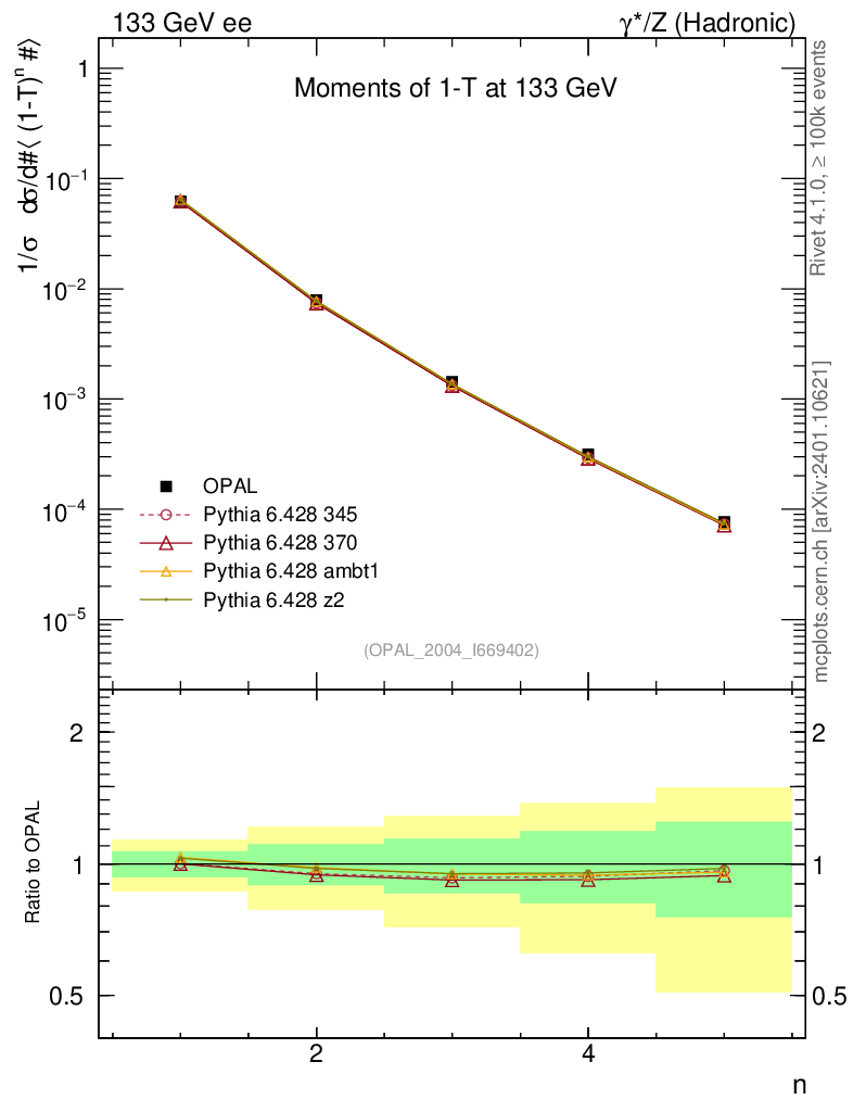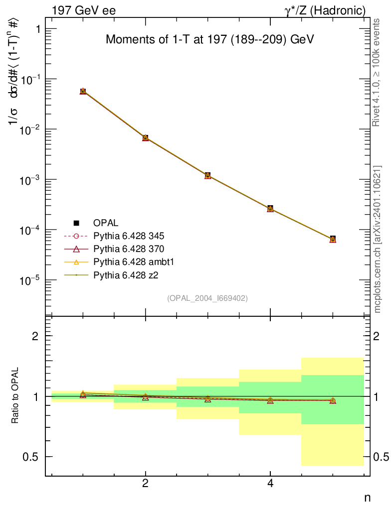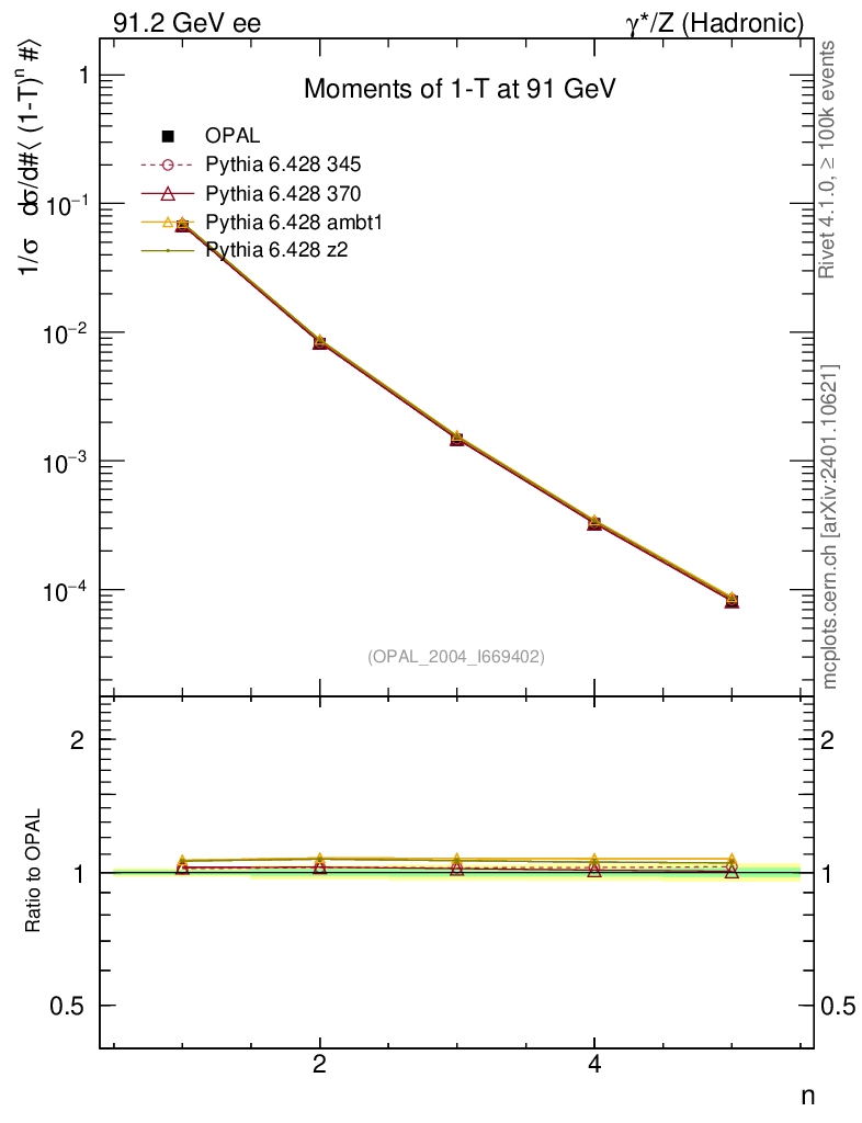 ee : γ*/Z (hadronic) : Event-Shape Moments : Moments of 1-T