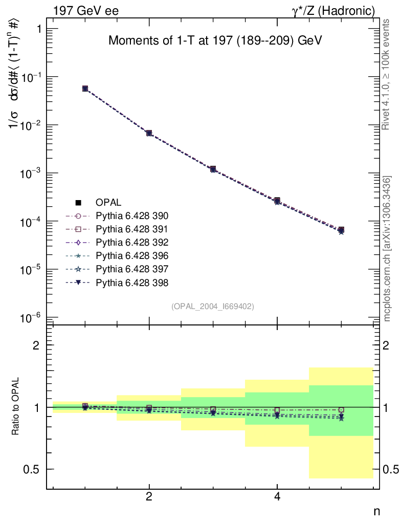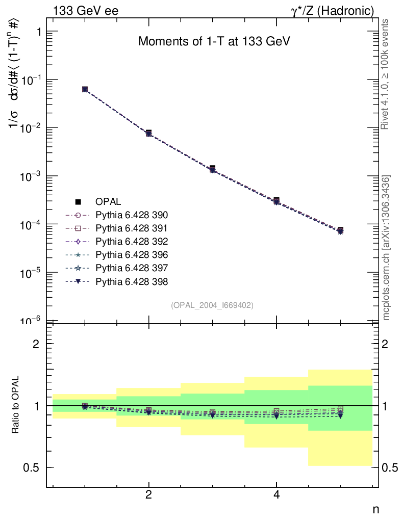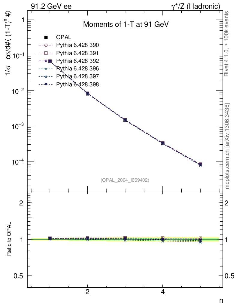 ee : γ*/Z (hadronic) : Event-Shape Moments : Moments of 1-T