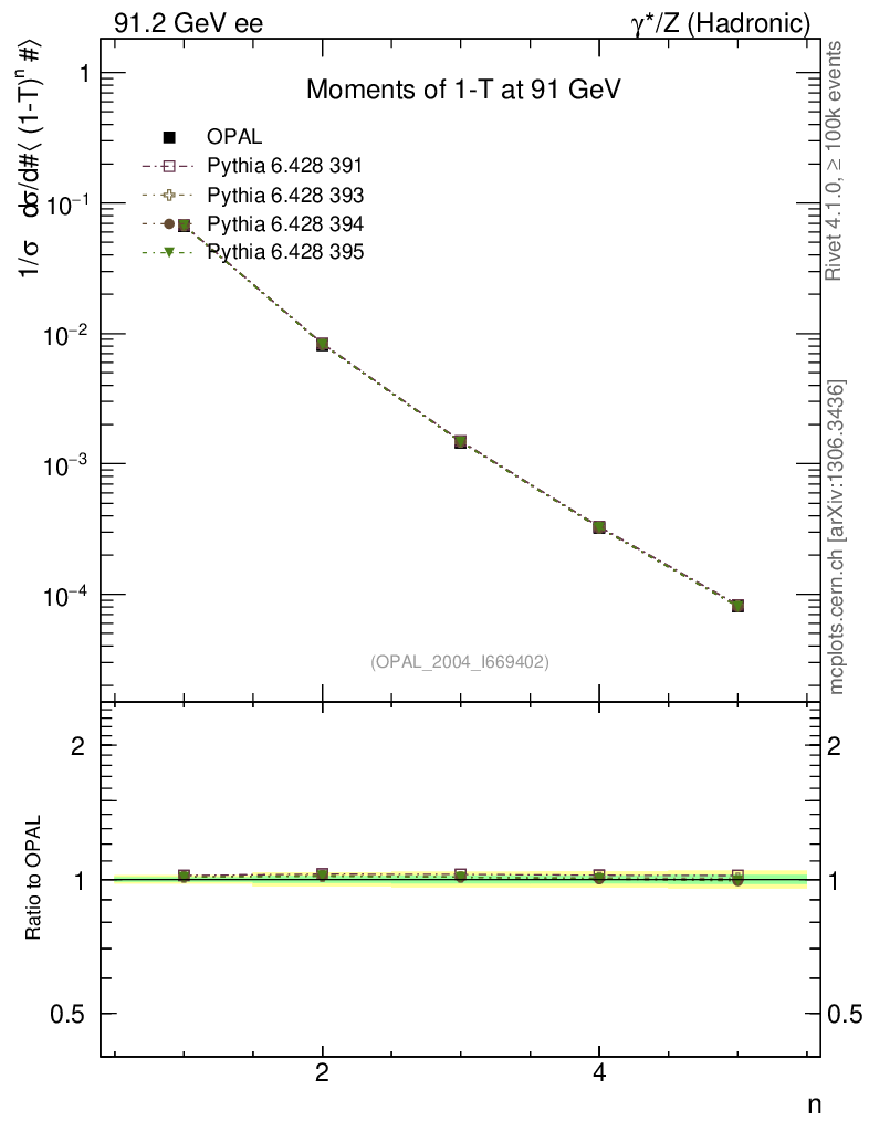 ee : γ*/Z (hadronic) : Event-Shape Moments : Moments of 1-T