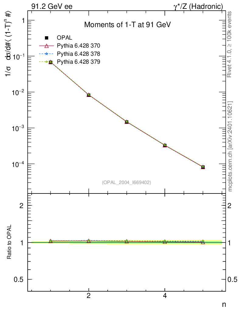 ee : γ*/Z (hadronic) : Event-Shape Moments : Moments of 1-T