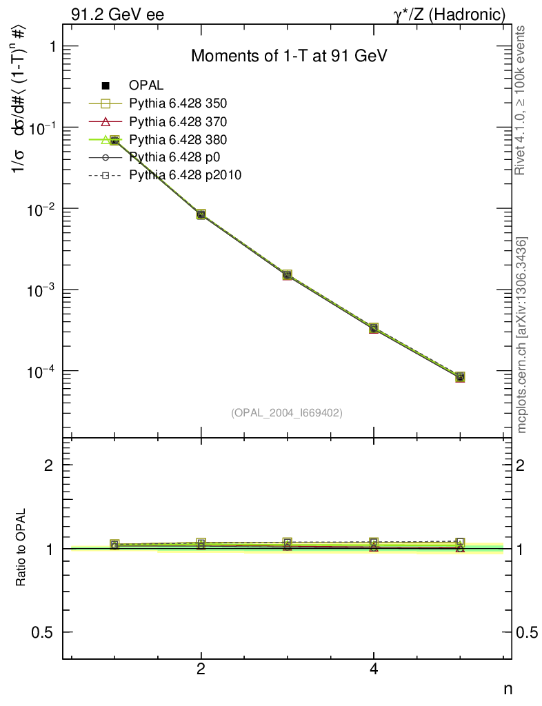 ee : γ*/Z (hadronic) : Event-Shape Moments : Moments of 1-T