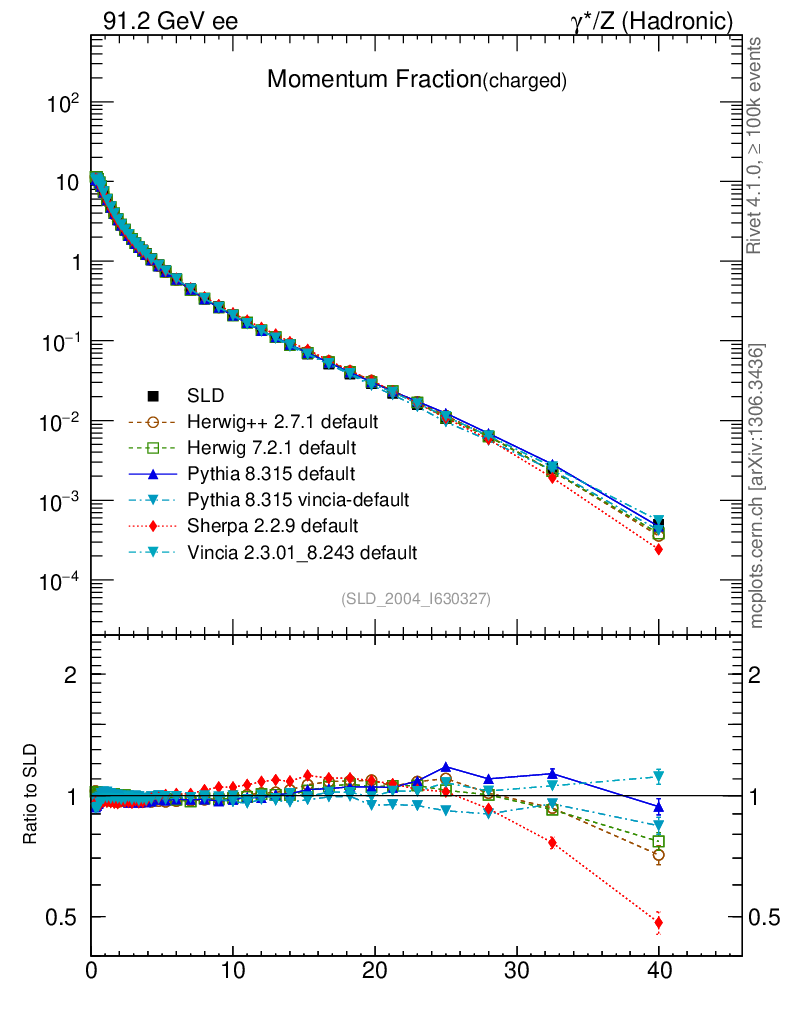ee : γ*/Z (hadronic) : Charged Particles : x
