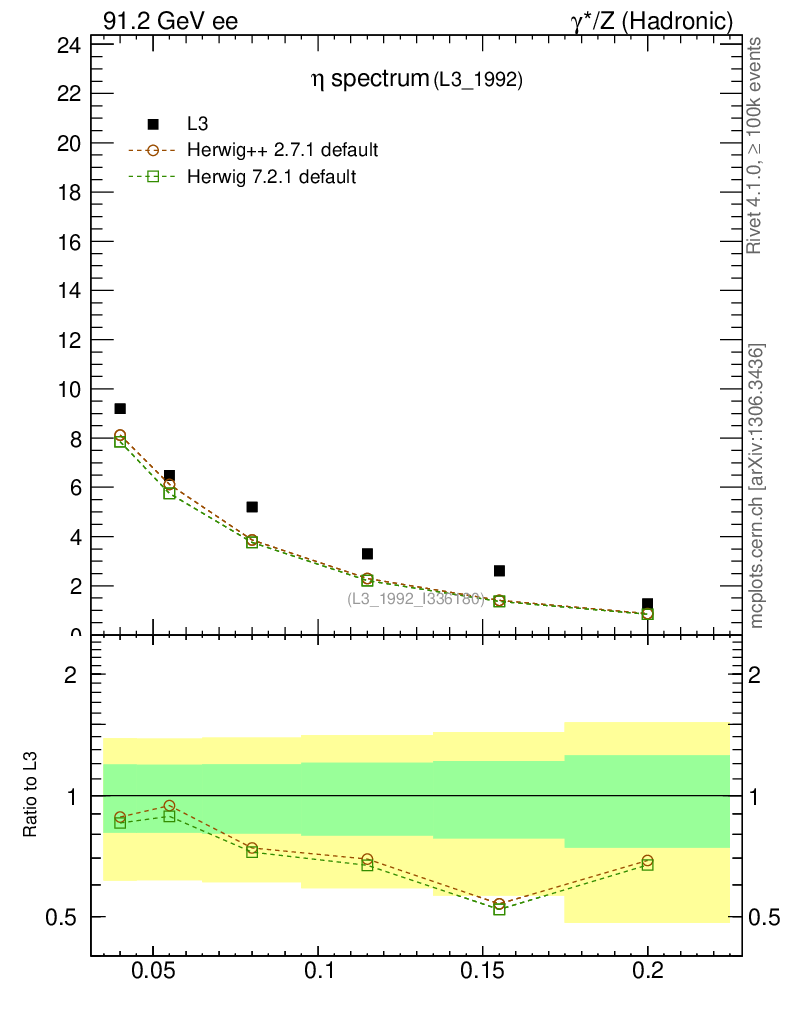 ee : γ*/Z (hadronic) : Identified Particles : η spectrum