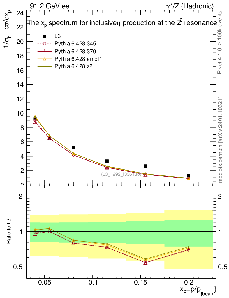 ee : γ*/Z (hadronic) : Identified Particles : η spectrum