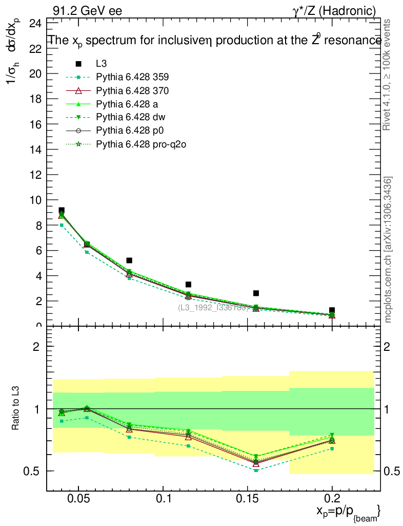 ee : γ*/Z (hadronic) : Identified Particles : η spectrum