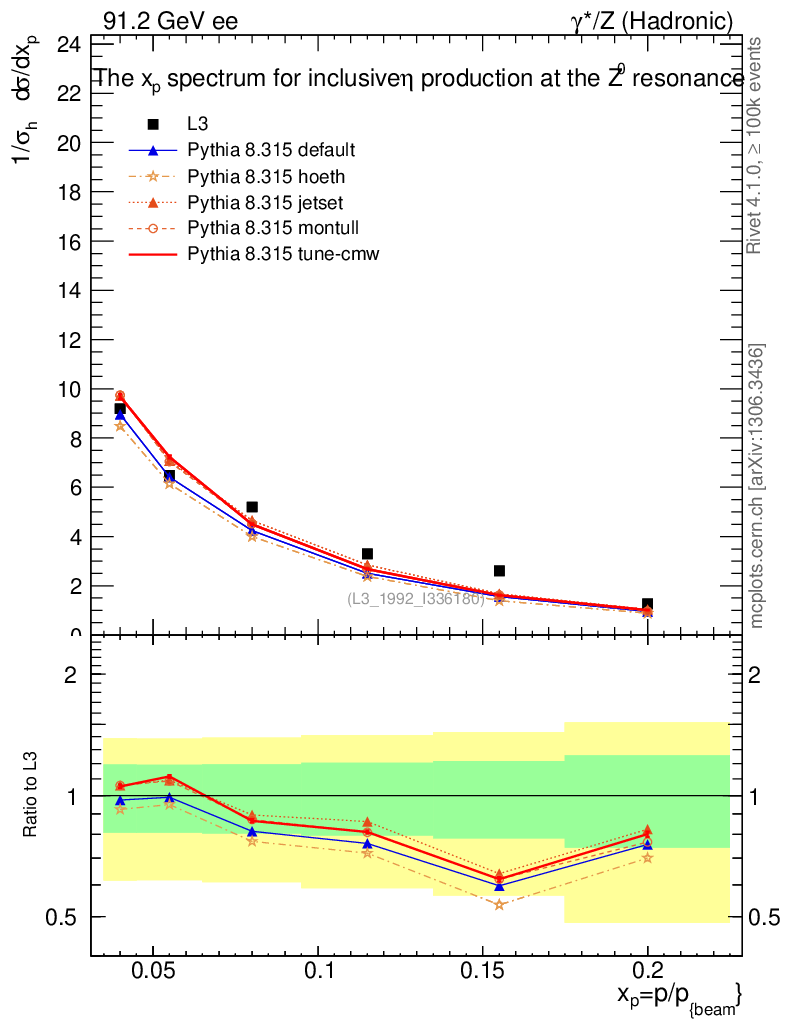 ee : γ*/Z (hadronic) : Identified Particles : η spectrum