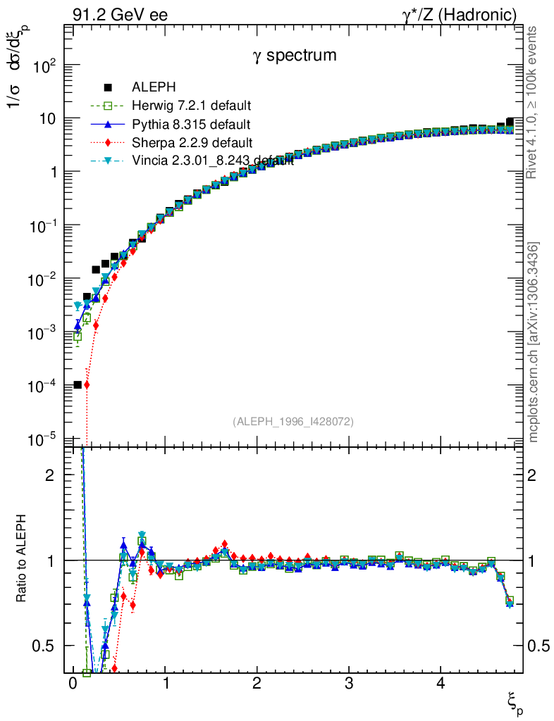 ee : γ*/Z (hadronic) : Identified Particles : γ spectrum