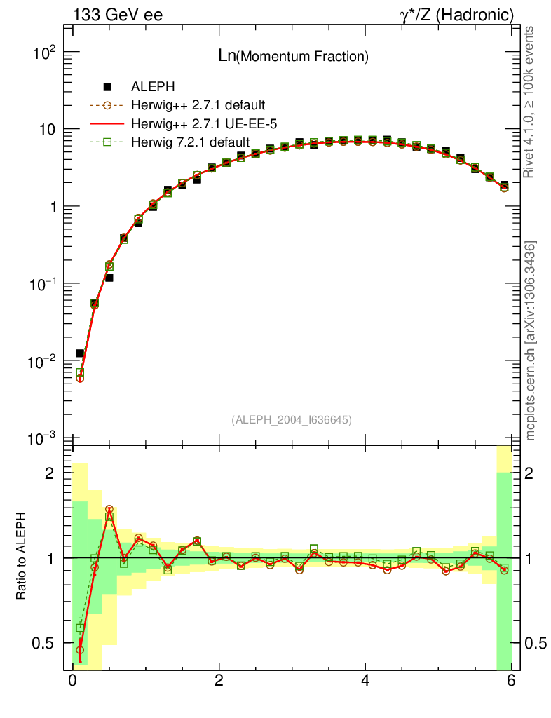 ee : γ*/Z (hadronic) : Charged Particles : Ln(x