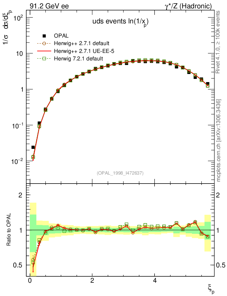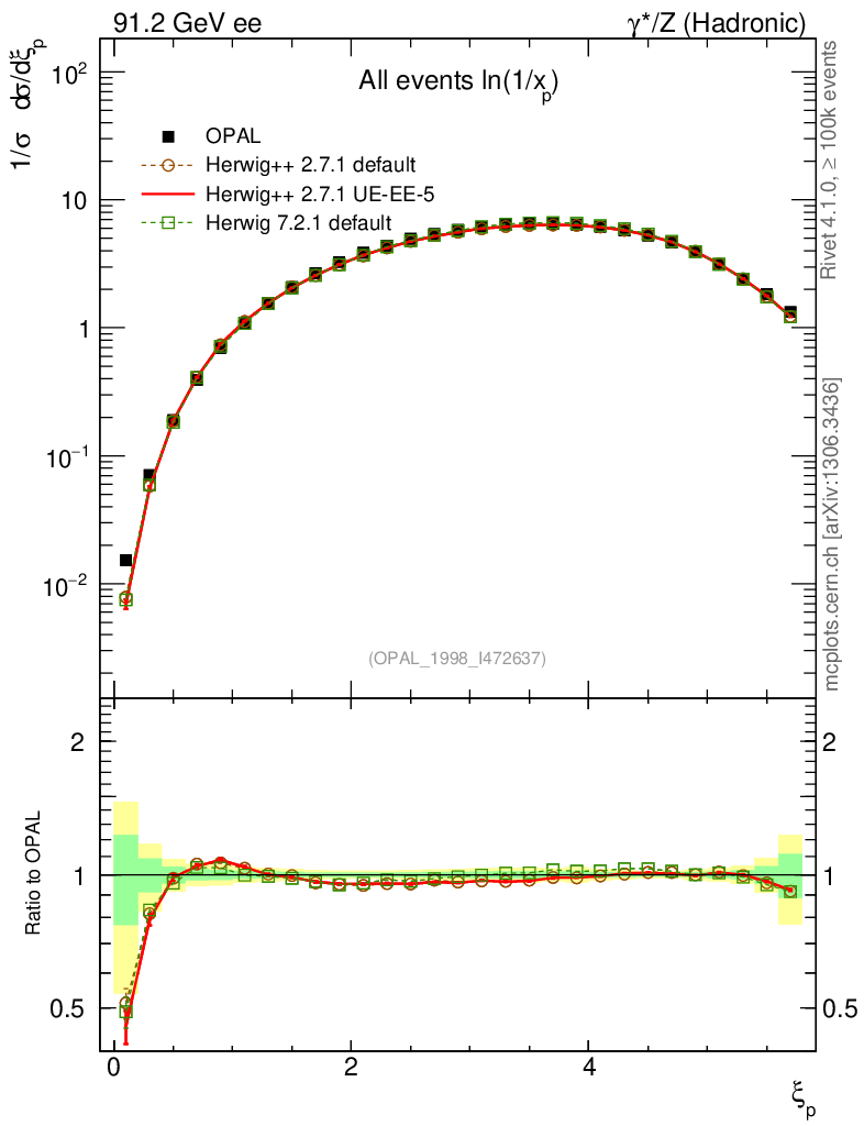 ee : γ*/Z (hadronic) : Charged Particles : Ln(x