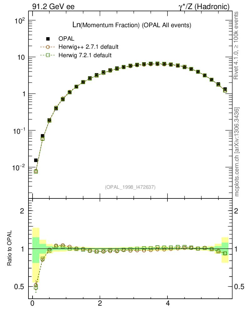ee : γ*/Z (hadronic) : Charged Particles : Ln(x