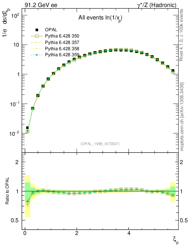 ee : γ*/Z (hadronic) : Charged Particles : Ln(x