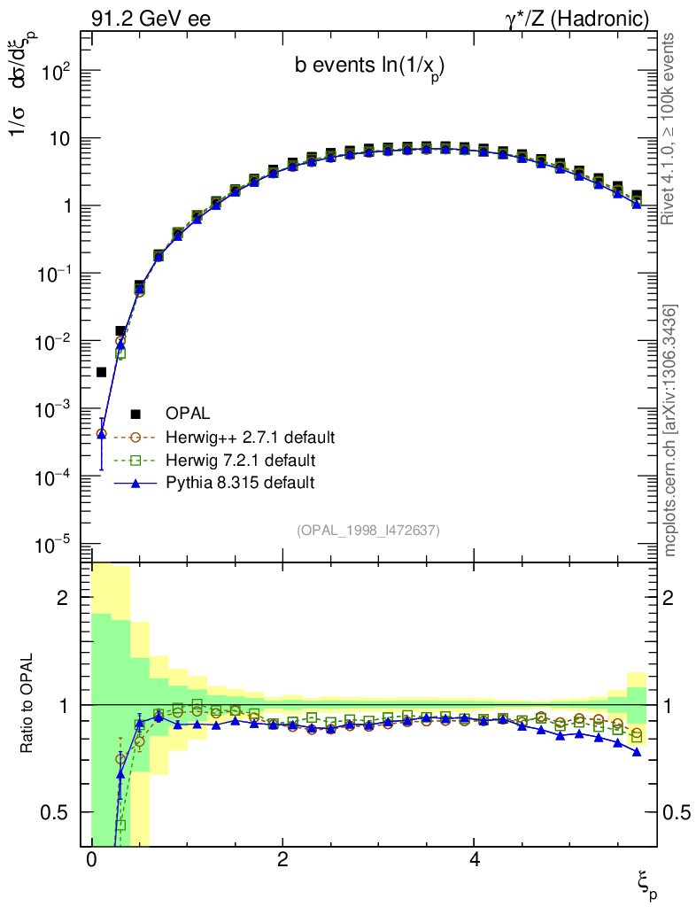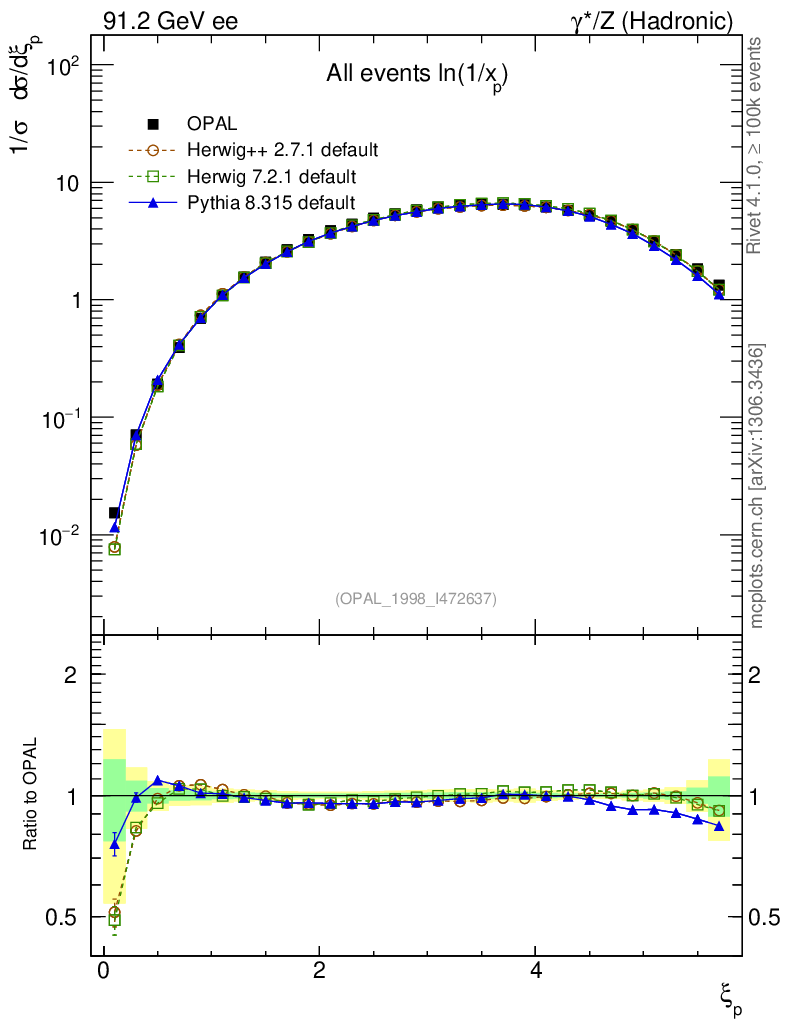 ee : γ*/Z (hadronic) : Charged Particles : Ln(x