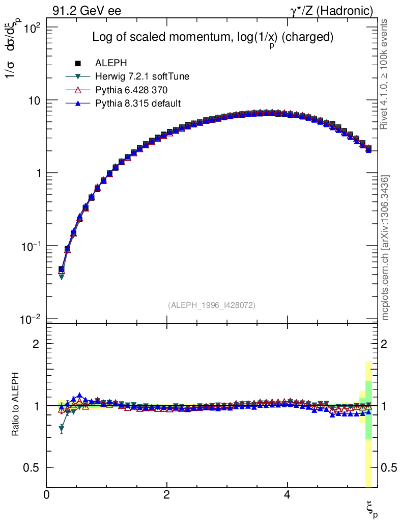 ee : γ*/Z (hadronic) : Charged Particles : Ln(x