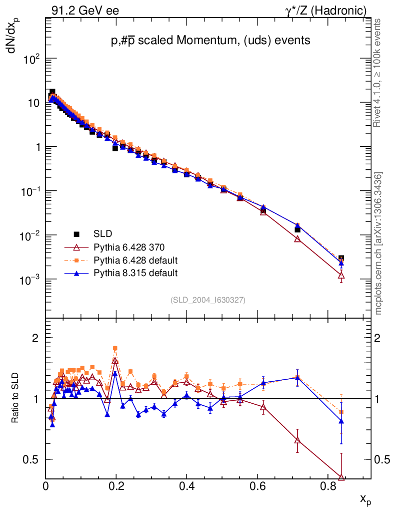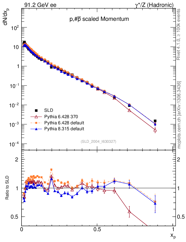 ee : γ*/Z (hadronic) : Identified Particles : p spectrum