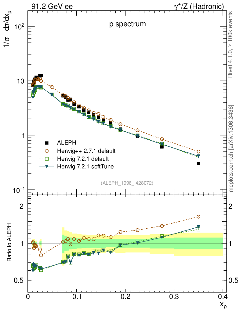 ee : γ*/Z (hadronic) : Identified Particles : p spectrum