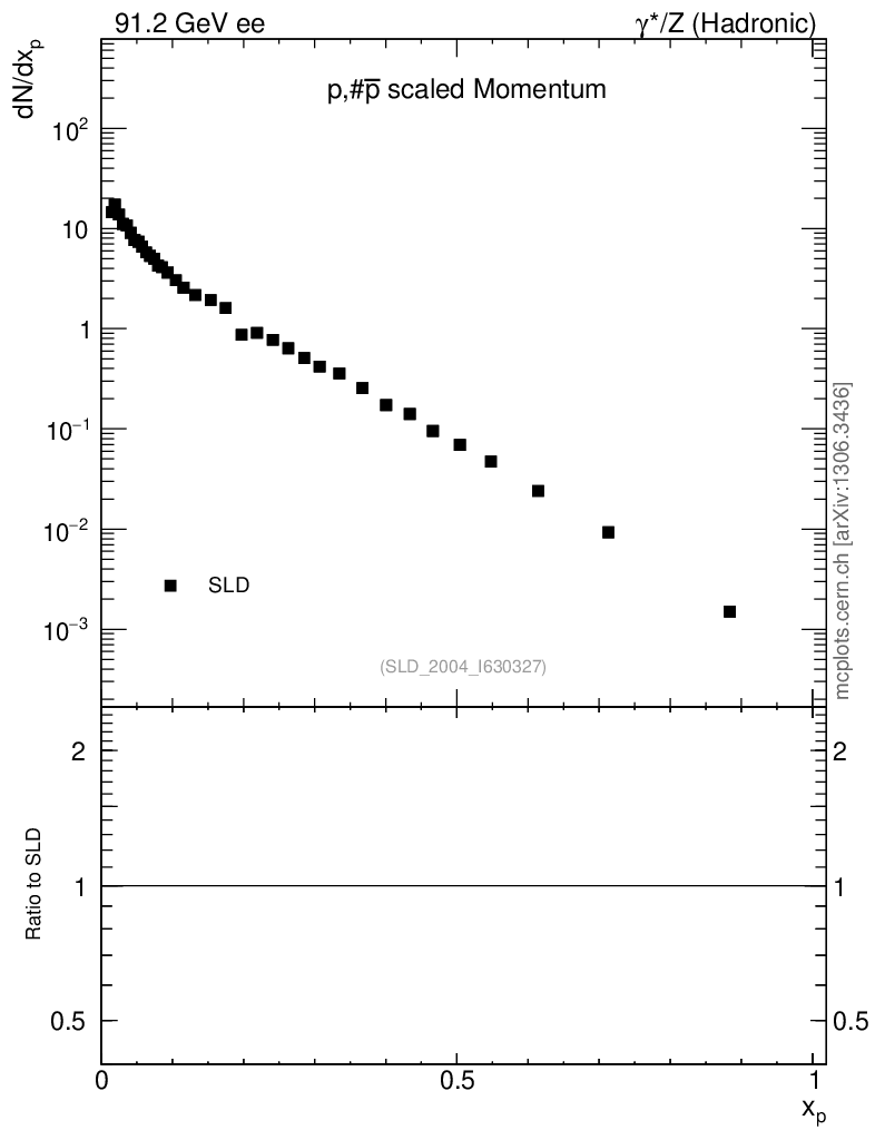 ee : γ*/Z (hadronic) : Identified Particles : p spectrum