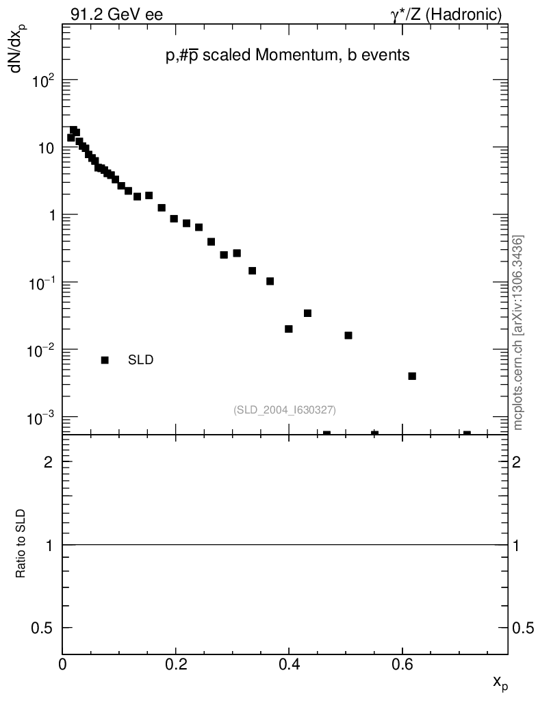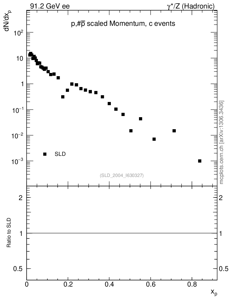 Plot of xp in 91.2 GeV ee collisions