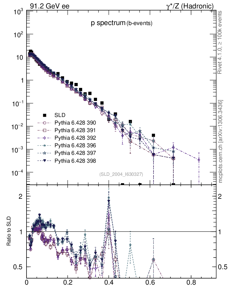 ee : γ*/Z (hadronic) : Identified Particles : p spectrum