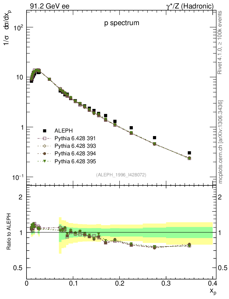 ee : γ*/Z (hadronic) : Identified Particles : p spectrum